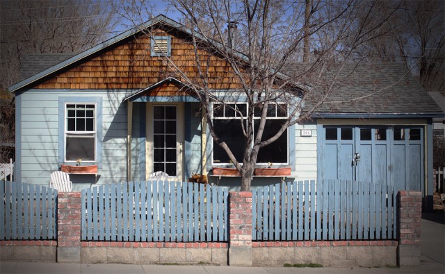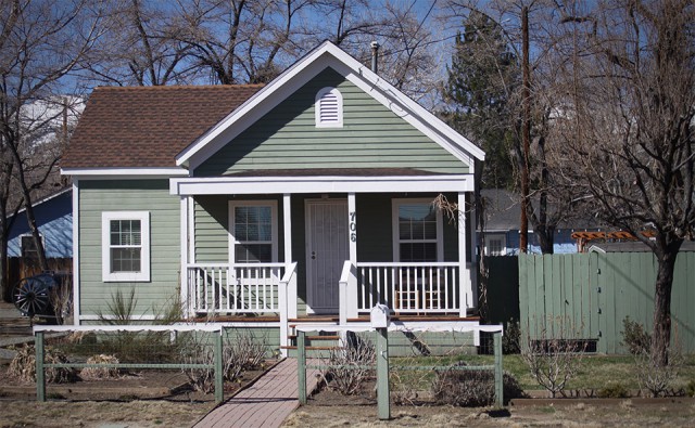 Green house with white trim